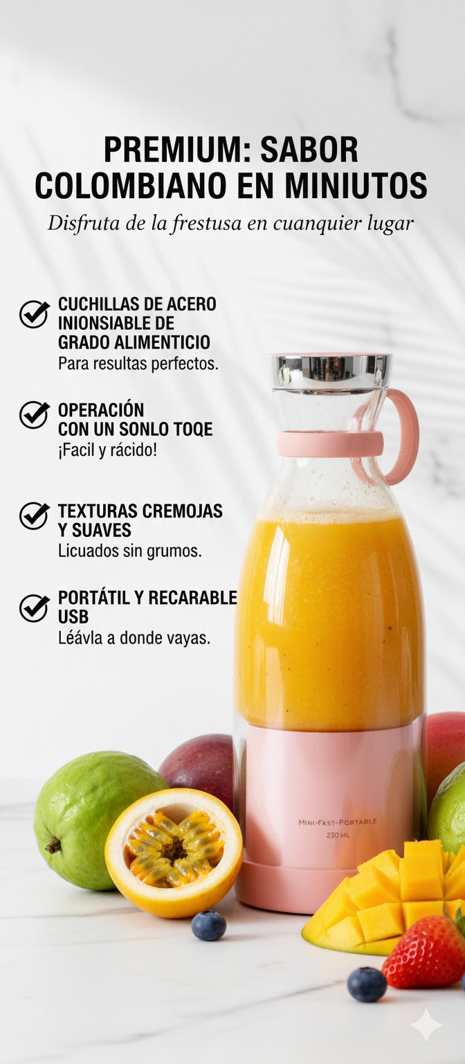 Cuchillas de acero inoxidable de grado alimenticio, operación de un solo toque y mezcla suave en un recipiente portátil de 350 ml.