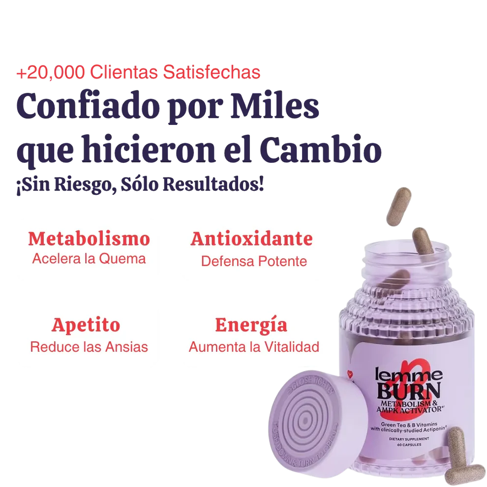 Lemme Burn es un activador metabólico natural diseñado para ayudar a tu cuerpo a volver a quemar grasa, eliminar hinchazón y recuperar energía sin depender de cafeína ni dietas extremas.