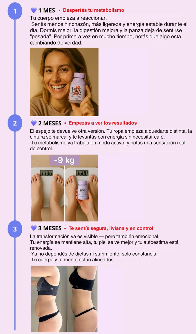 Su fórmula actúa directamente sobre los procesos metabólicos que suelen “apagarse” con el estrés, la edad o la mala alimentación, ayudándote a reactivar la quema natural de grasa, mejorar la digestión y mantener un nivel de energía constante durante todo el día.