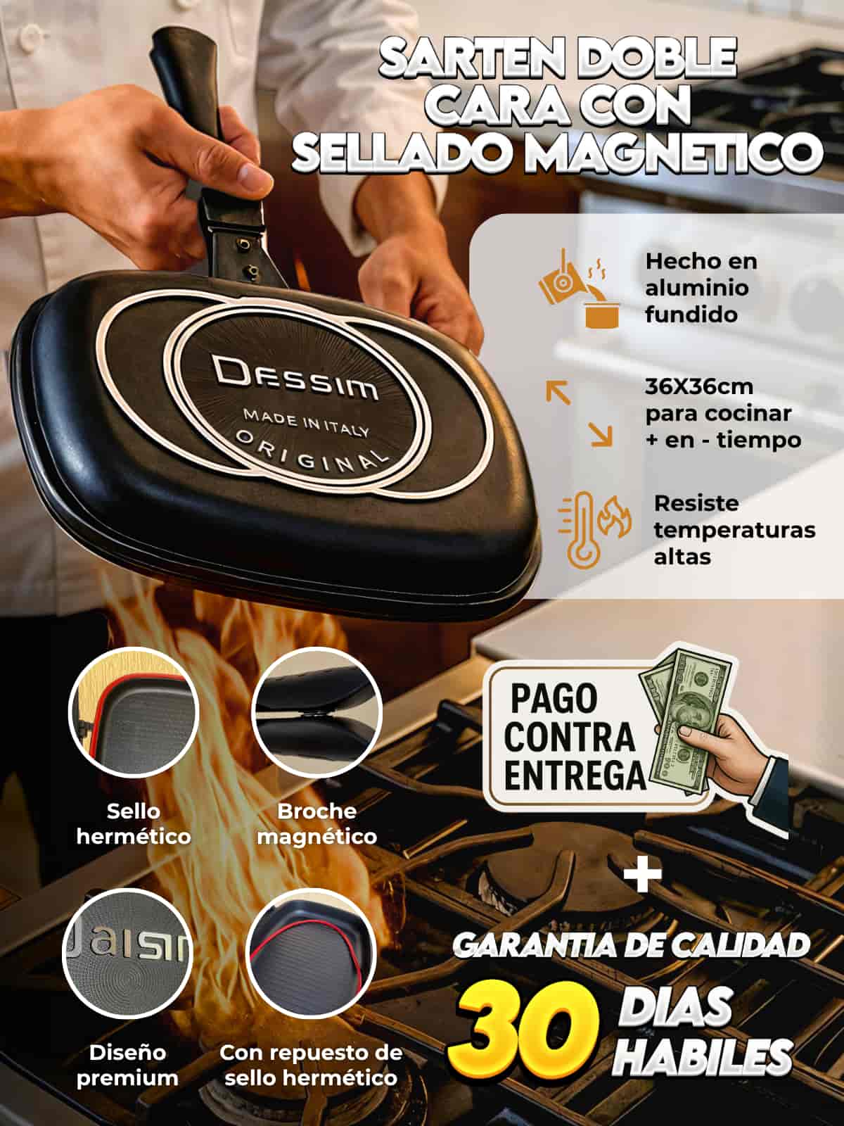 Sartén Antiadherente con sellado hermético y cierre magnético con repuesto de goma selladora + ENVIO GRATIS Y PAGO CONTRA ENTREGA